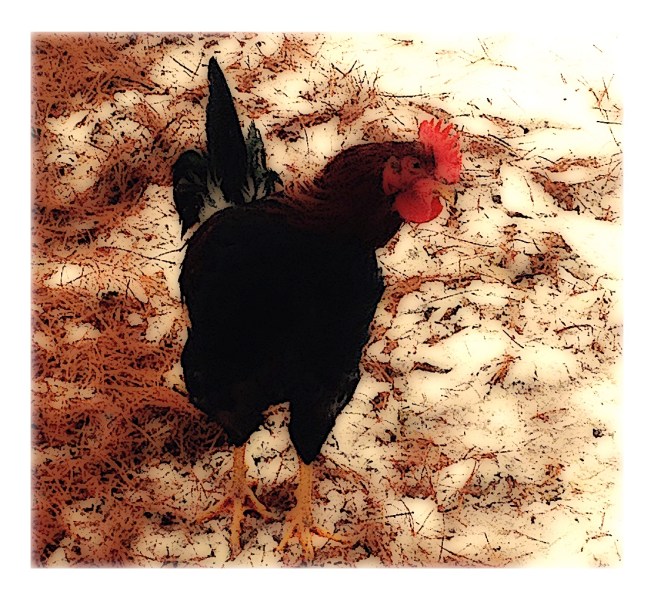 And, so far, our experiences with roosters are pretty positive. The two we have, Runkle and Rooster, are at least pretty sweet. We can hold them, though they gripe about it a bit. And Rooster is a great guard rooster. He worries about the girls, gets stressed if something is out of sorts, and is the last one into the coop every night. He’s a good boy!